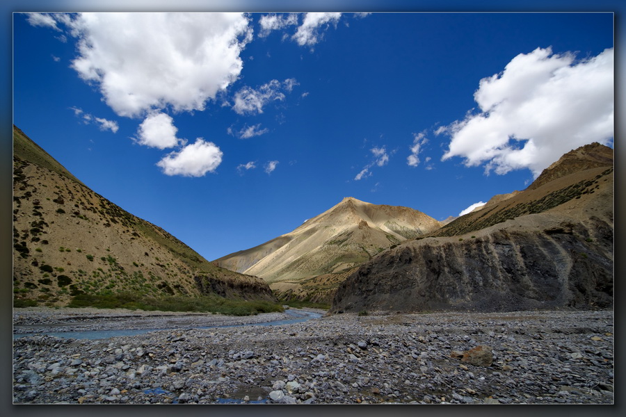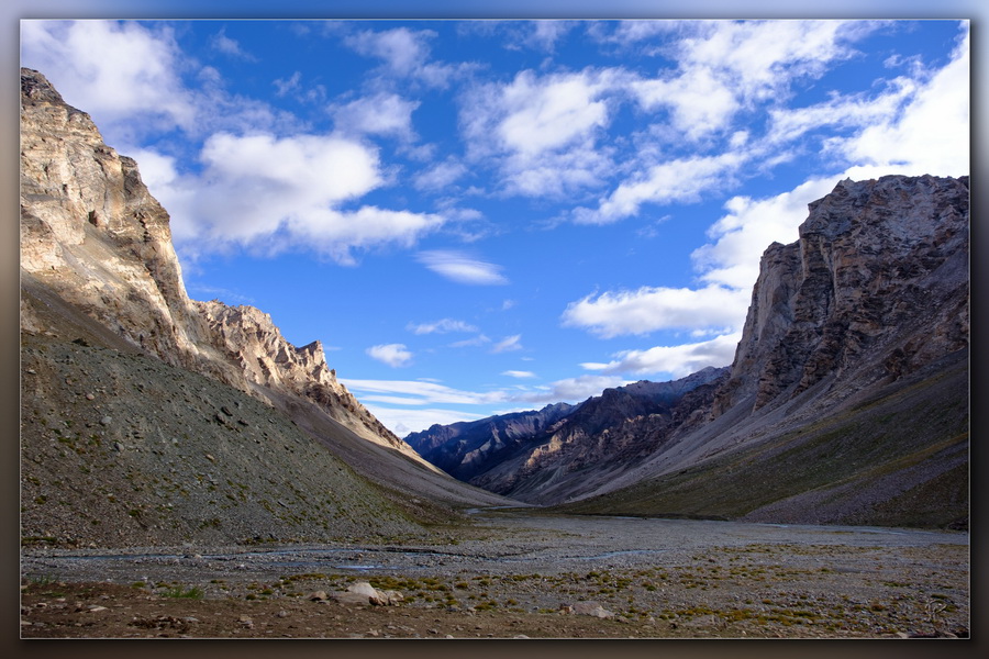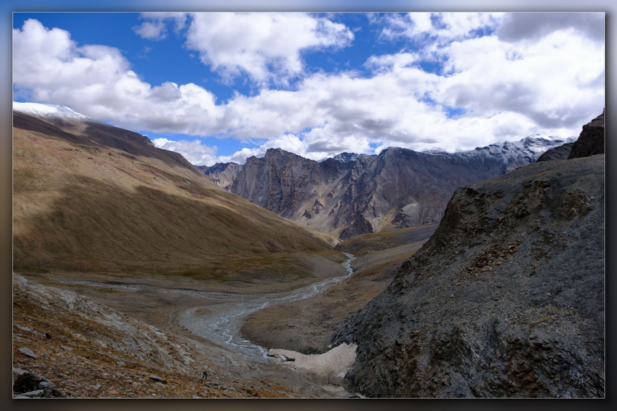 20 août – Nous traversons le village de Zangla en direction de Zangla Sumdo longeant le canal d’amenée d’eau d’irrigation du village. Cette première partie est bien agréable, mais ça ne va pas durer. Nous plongeons dans le lit de la rivière où le chemin n’existe plus ; il nous faut progresser le long du cours d’eau, devant le traverser à de nombreuses reprises à pieds secs. Entre 20 et 50 cm d’eau glacée. Sept heures de progression au milieu des buissons et dans les pierres. Arrivée au camp de Zangla Sumdo vers 16 heures.