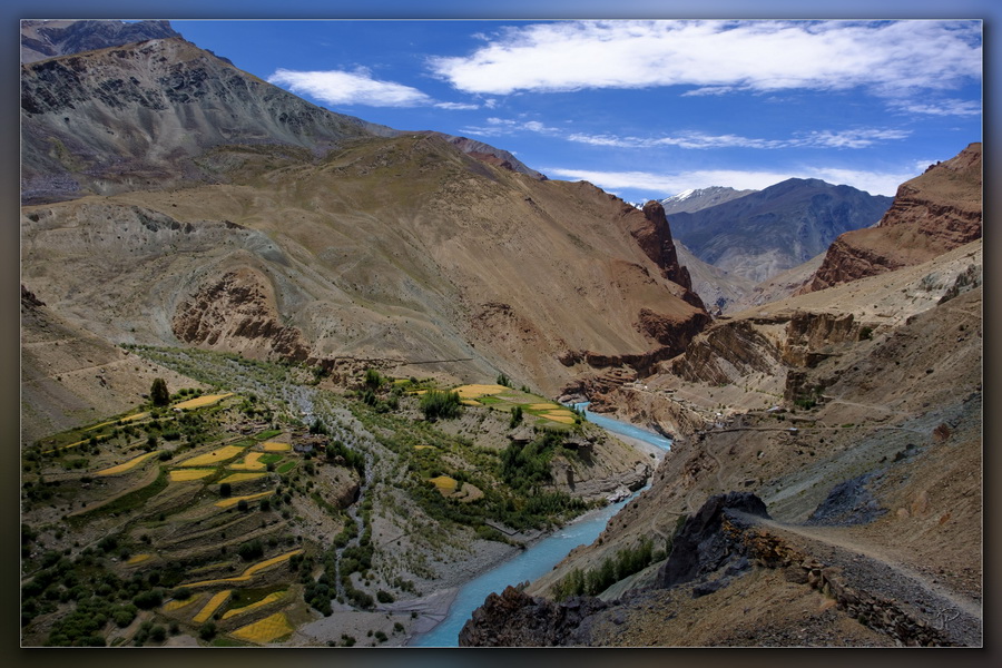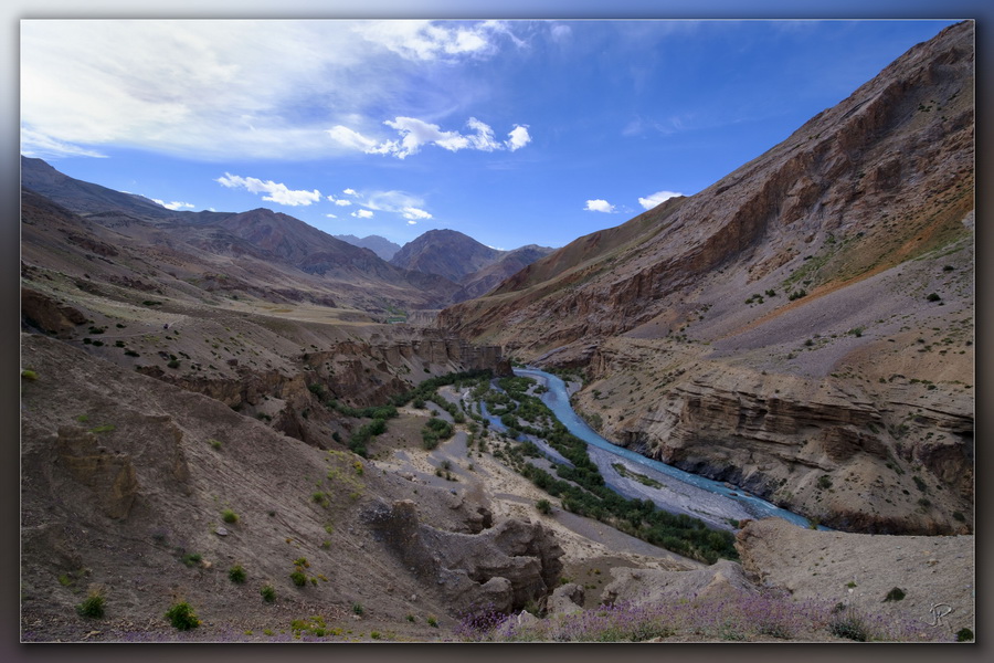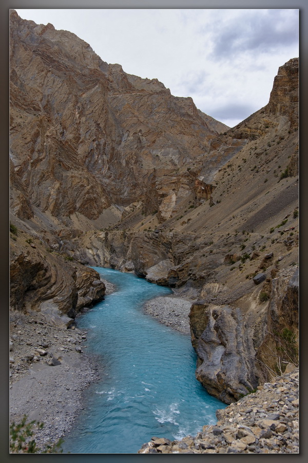 25 août – Nous quittons Shade, un des villages les plus retiré du Zanskar. Départ pour Yatala, étape intermédiaire avant Phuktal. Une longue marche le long de la rivière Tsarap dont la couleur turquoise en fini pas de nous émerveiller. Il faut cependant garder les yeux sur le chemin … un faux pas serait fatal … le tracé surplombe la rivière d’une bonne cinquantaine de mètres, voir plus dans certains endroits. Je n’ose pas suivre des yeux la progression du cheval et de sa cavalière …
