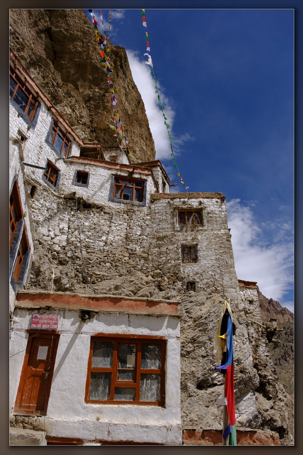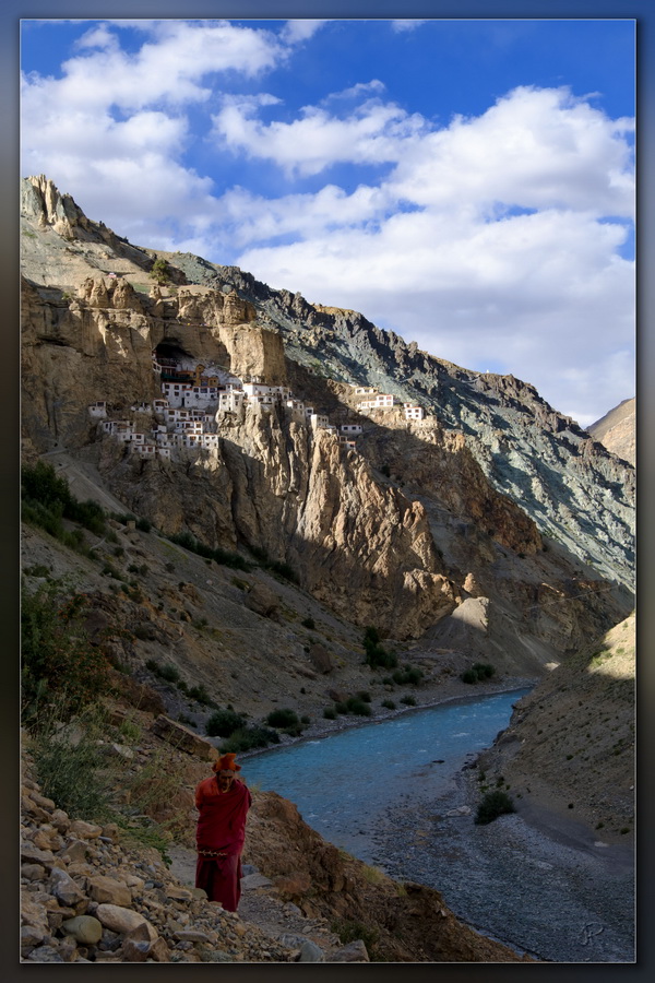 26 août – Une fois redescendu de notre promontoire, et sous un soleil radieux, nous reprenons la direction de Phuktal, longeant toujours la magnifique Tsarap. La perspective d’un jour de repos et de retrouver ce lieu magique nous redonne une énergie bienvenue. Lors du voyage de 2015, nous avions été un peu frustrés de ne pas avoir eu le temps de s’imprégner de ce qui se dégage de ce lieu.