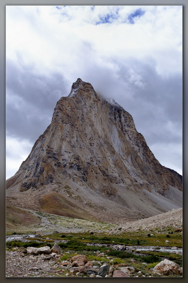 30 août – Nouvelle nuit arrosée. Mais les dieux de la météo sont avec nous ; nous marcherons à nouveau au sec jusqu’à Singo La base avec en toile de fond la magnifique montagne sacrée des Zanskaris. A l’arrivée au camp, surprise, nous retrouvons Gombo. Notre cuisinier d’il y a deux ans qui maintenant tient le parachute café de ce camp. J’ai oublié de vous dire que nous avons retrouvé Namphel un de nos accompagnants de 2015 à Phuktal. Il accompagne un couple de jeunes français jusqu’à Zanskar Sumdo. Ils suivent le même itinéraire.