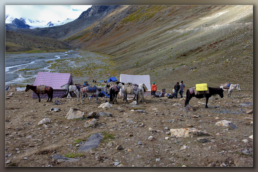 19 août – Départ en voiture pour le camp un. La caravane de 9 chevaux nous rejoint près de Zangla où nous nous installons pour la première nuit sous tente